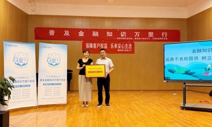 现场互动环节亮点频现。在各模块知识分享后,学生围绕 "如何辨别诈骗话术"" 假币处置流程 " 等问题踊跃发言,淮南市银行业协会秘书长王继斌为互动表现最活跃的学生赵静颁发纪念礼品。