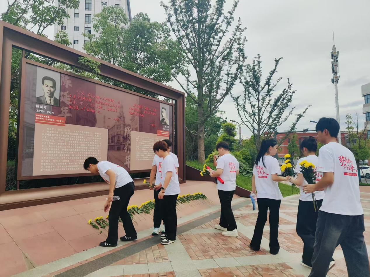 奋进的团歌再度响起,激昂的旋律呼应着青春的初心。仪式尾声,全体人员移步至“延乔兄弟生平景墙”,怀着无比崇敬的心情向陈延年、陈乔年烈士敬献鲜花,深切缅怀革命先烈。驻足于红色印记之间,青春与信仰在此刻交融,镌刻下永恒的信仰坐标,照亮了团员青年们以青春挺膺担当、奋力前行的道路。