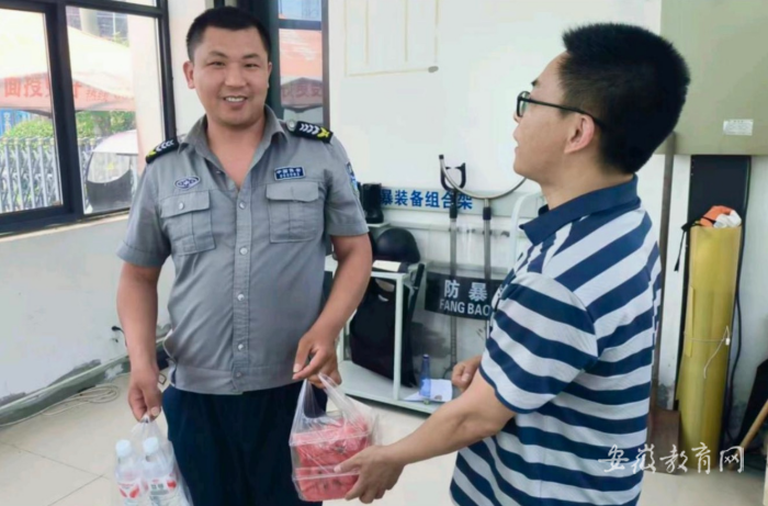 活动中,工作人员将精心准备的西瓜、矿泉水等防暑降温物品一一送到教职工、保安、宿管和保洁人员的手中,感谢他们在炎炎夏日里在各自岗位上的辛勤付出,提醒大家注意劳逸结合,做好防暑降温。