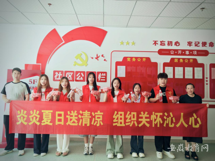 随后,工作人员专程前往参与“三下乡”社会实践的学生团队驻地社区,看望慰问学生代表,详细了解团队实践进展和成员身体状况,充分肯定同学们深入基层、服务社会的热情与担当,并叮嘱同学们在开展实践活动时务必做好防暑降温措施,确保健康安全。