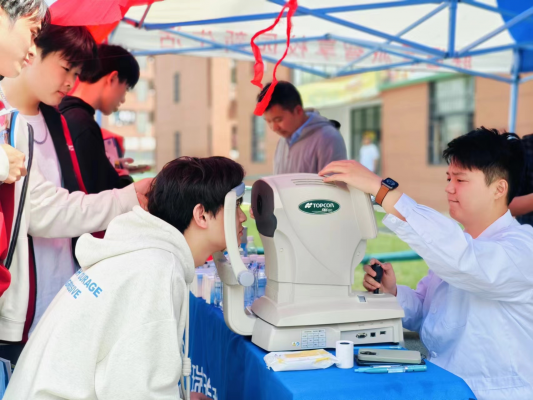我为同学办实事|校学生会开展“明眸行动 校园光明行”公益活动为不断提高我校近视防控工作能力,切实做实做细做深青少年近视综合防控工作,4月18日,校学生会联合合肥普瑞眼科医院在学生宿舍楼前,